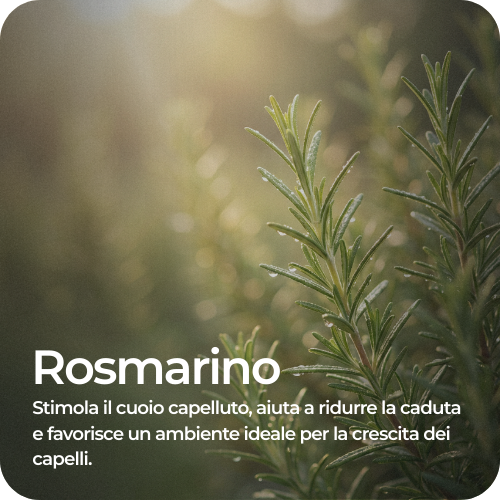 Rosmarino: Stimola il cuoio capelluto e aiuta a sostenere un ambiente favorevole alla crescita dei capelli.